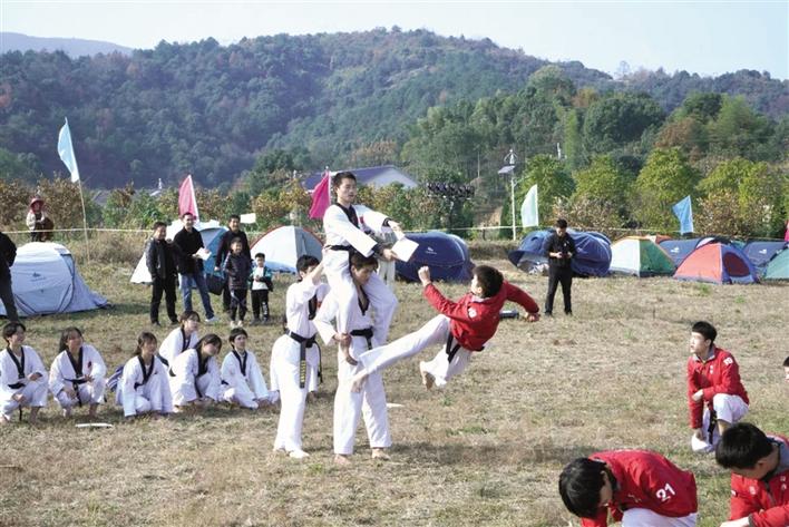 ????12月5日,常德第六屆戶外帳篷節在太陽山滑翔傘基地舉行。活動吸引了300余名大學生及戶外運動愛好者參與。本次活動由湖南省體育局主辦,常德市文化旅游廣電體育局、湖南文理學院體育學院承辦。圖為活動現場的跆舞表演。 尚一網記者 徐志雄 通訊員 黃江 攝