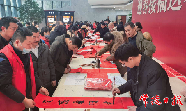 ??? 據悉,除活動現場書寫贈送的春聯外,張錫良書法工作室還準備了30副春聯送給線上排隊領取的市民。