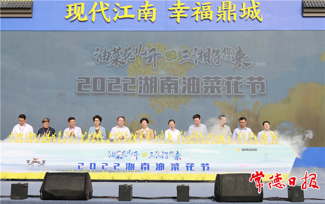 ????尚一網(wǎng)訊(記者 鄭彥 劉清)油菜花兒開,三湘等你來!3月15日上午,隨著省委常委、副省長張迎春現(xiàn)場宣布,2022湖南第三屆油菜花節(jié)在主會場常德鼎城區(qū)十美堂鎮(zhèn)6萬畝油菜花海中正式開幕。開幕式上,2022湖南十大最美油菜花景點名單發(fā)布,鼎城區(qū)政府與六大湖南油脂企業(yè)簽訂戰(zhàn)略合作協(xié)議。