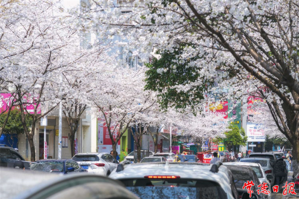 ????當你想在常德城區逛街時,最先想到哪條街?是“老牌”的步行街、水星樓商業街、文理后街,還是“新貴”的常德河街、萬達金銀街、德國風情街……今年的三月,氣溫回暖,常德城區高山街的櫻朵競相開放,市民穿行在櫻花與高樓大廈之間,踏步在粉紅色斑馬線上,聆聽陣陣風鈴聲,爭相在這里拍照打卡。幾年來,三月的高山街逐漸成了“網紅街區”。