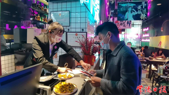 ????市民肖先生領券之后在辣斗辣火鍋店消費,享受菜品5.8折,省了91元。記者 蔡文龍 劉奕麟 攝