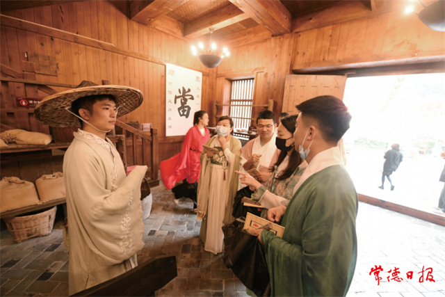 游客體驗大型古風沉浸式實景劇本殺《尋桃源·覓武林》。