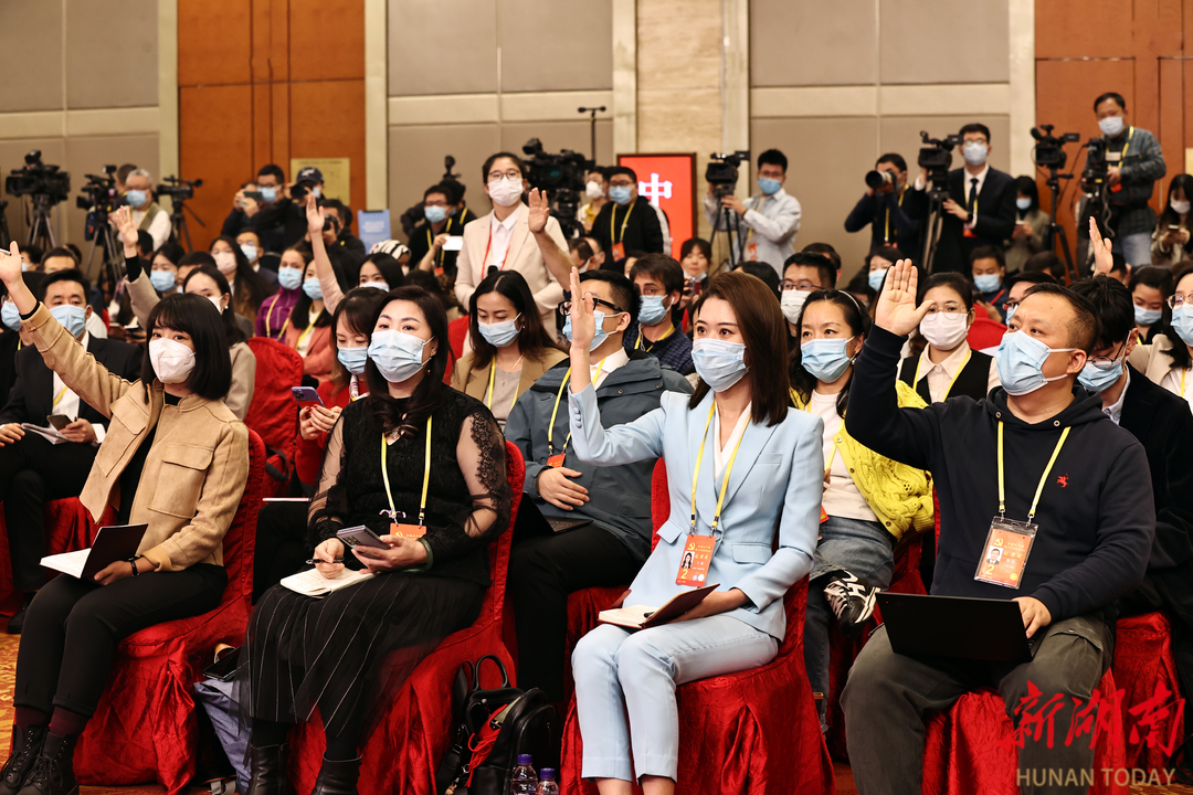 (記者在分會場舉手提問。以上圖片均由 湖南日報全媒體記者劉尚文攝)