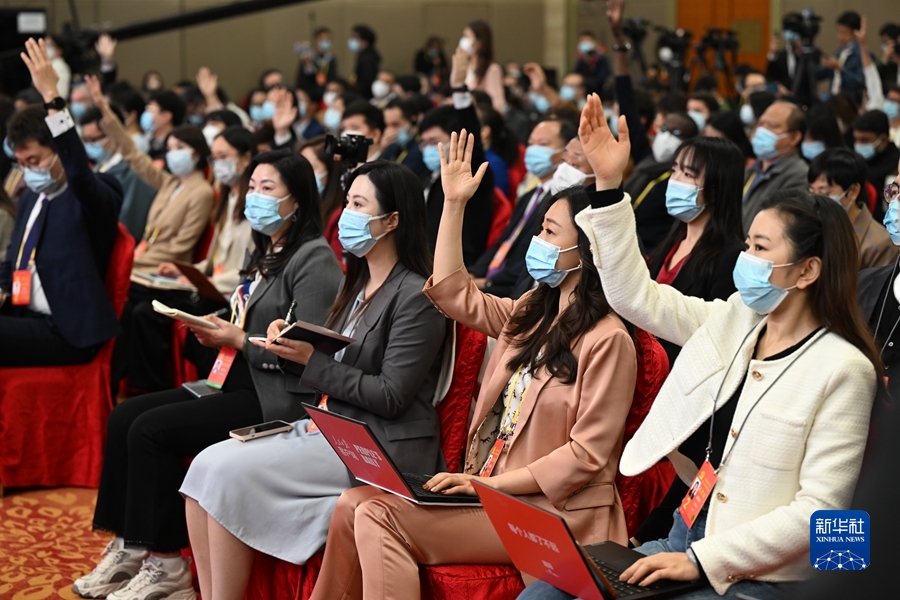 這是記者在分會場舉手提問。新華社記者 金良快 攝