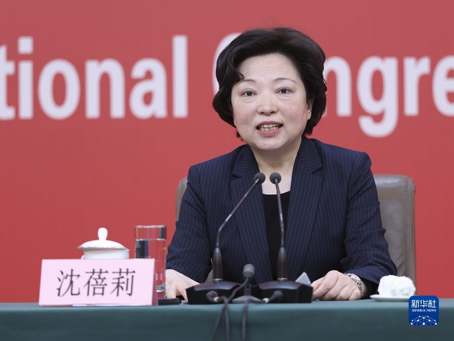 這是沈蓓莉在記者招待會上。新華社記者 張玉薇 攝