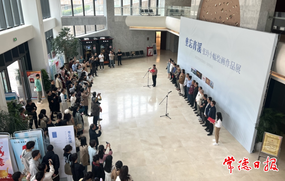 常德日?qǐng)?bào)記者 李紫瑩 通訊員 郭宏忠 文/圖 9月26日上午,“坐忘青溪”張玲小幅繪畫作品展在常德市文化館開展。