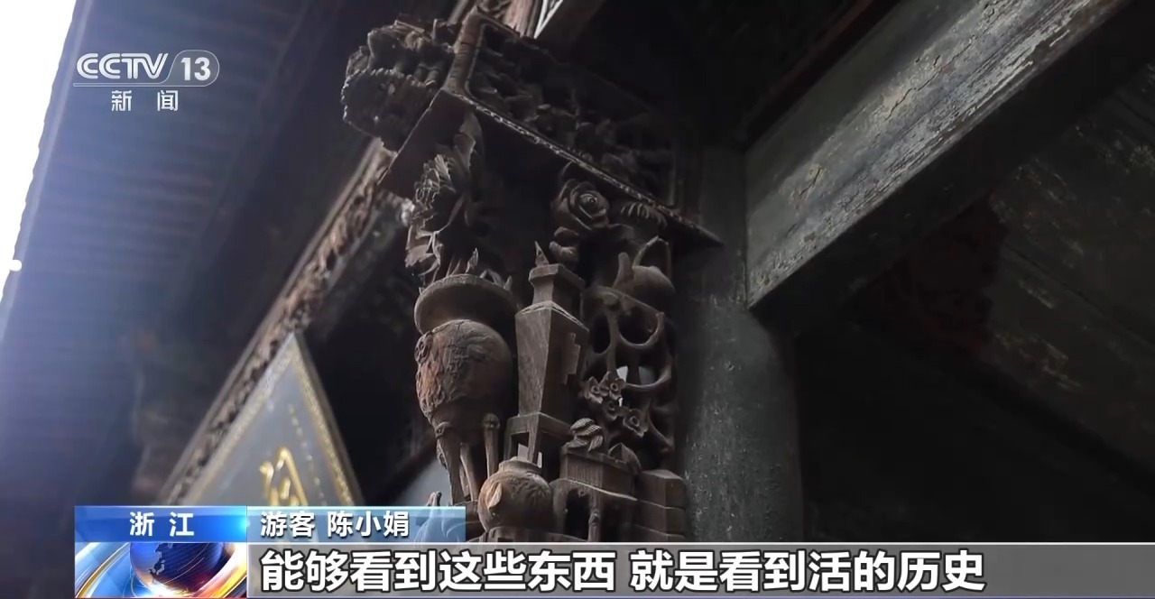游客 陳小娟:我發現保存的挺好的,像這種木結構的雕花,我還沒有看到過。能夠看到這些東西,就是看到活的歷史,就能從這方面去了解。再通過那些文字,都能夠了解得更清晰。