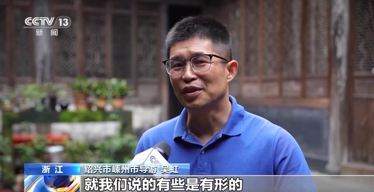浙江省紹興市嵊州市導游 吳虹:這個就是文脈的一種保護,有些是有形的,比如說像這種建筑,有些是我們的故事。我說咱們那個古鎮是一個活著的古鎮,這個活著指的就是文化。