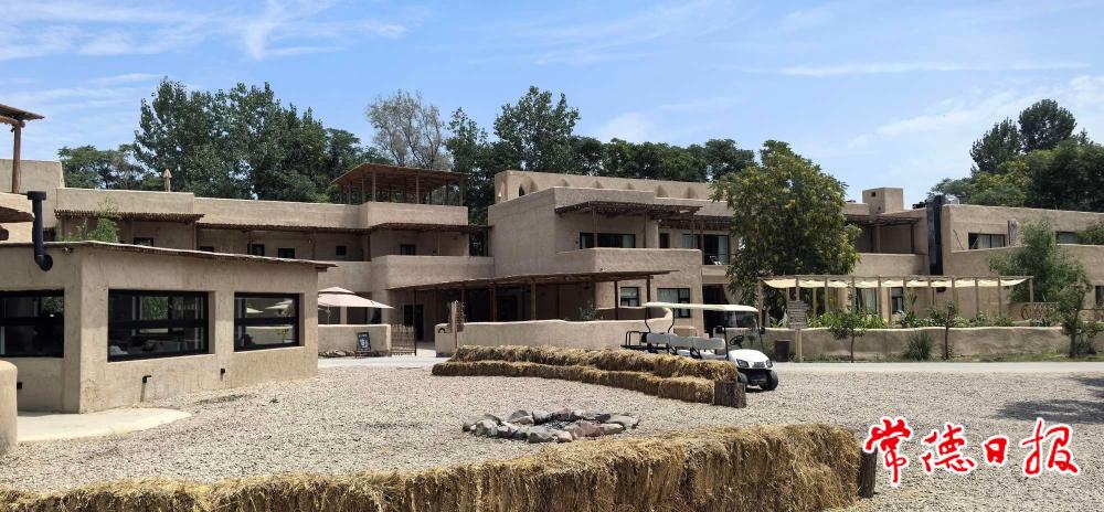 從中衛(wèi)市中心高廟保安寺乘坐出租車,半小時(shí)即可到達(dá)黃河宿集的停車場(chǎng)。一下車,西坡酒店的工作人員瑤瑤開著接駁車來了。瑤瑤是個(gè)年輕的短發(fā)女孩,河南人,笑起來有些靦腆。