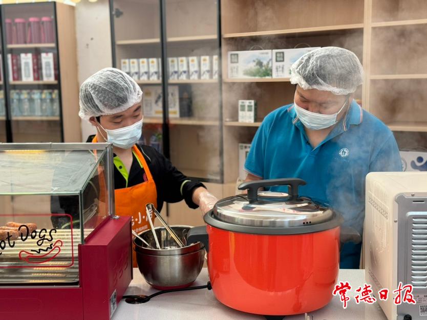 常德日報記者 吳紫欣 通訊員 楊昊翰 周詠雪 文/圖 “玉米、雞蛋、烤腸和牛奶,‘四選三套餐’優惠價8元,歡迎選購……”10月25日清晨,常德市社會福利院“陽光小店”內煙火氣十足,兩名店員一邊麻利地干活,一邊熱情地為顧客介紹新服務,吸引不少職工前來購買。