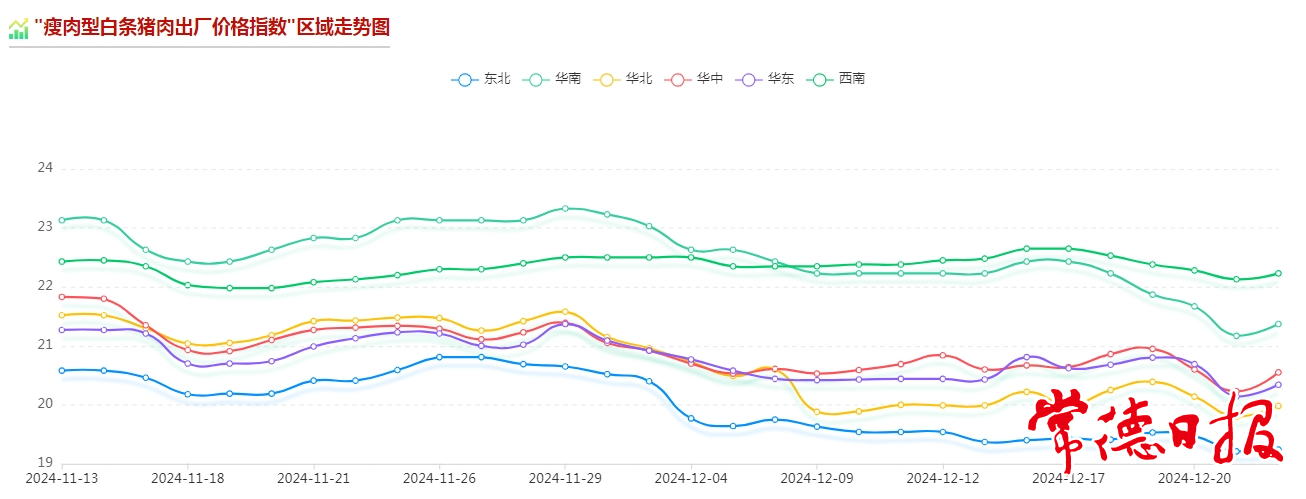 結合農業農村部“瘦肉型白條豬出廠價格指數”的全國走勢圖、區域走勢圖來看,近期生豬市場價格波動相對比較明顯。這或許與佳節臨近、天氣等市場價格帶來的消費波動有關。