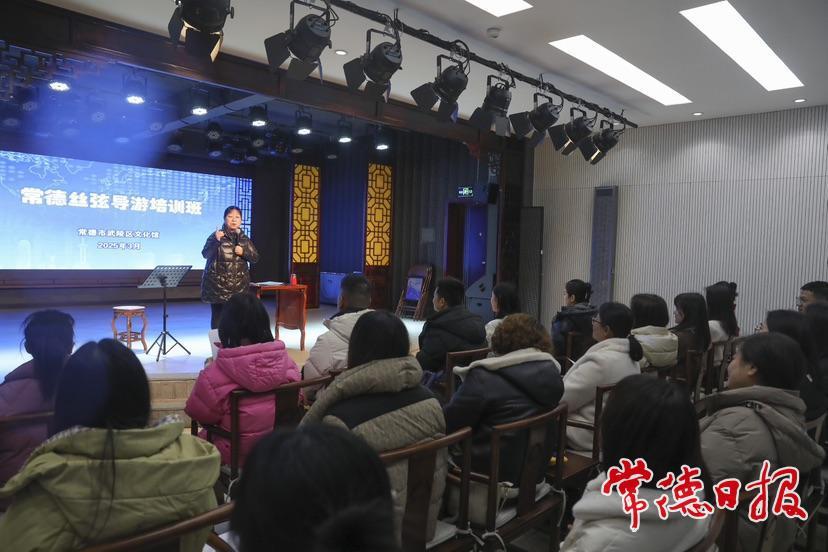 常德日報記者 裴維維 通訊員 汪洋 文/圖 3月5日,常德絲弦導游培訓班在武陵區文化館正式開班。來自我市部分旅行社專職導游、一線文旅從業人員、旅游教學人員以及市導游員協會會員等相關行業從業人員共22人齊聚一堂,在常德絲弦國家級非遺代表性傳承人諶曉輝的指導下,學習常德絲弦理論知識及基本唱法,提升業務技能,助力其在激烈的旅游市場競爭中脫穎而出,講好常德故事,樹好常德形象,為常德文旅產業高質量發展注入新動能。