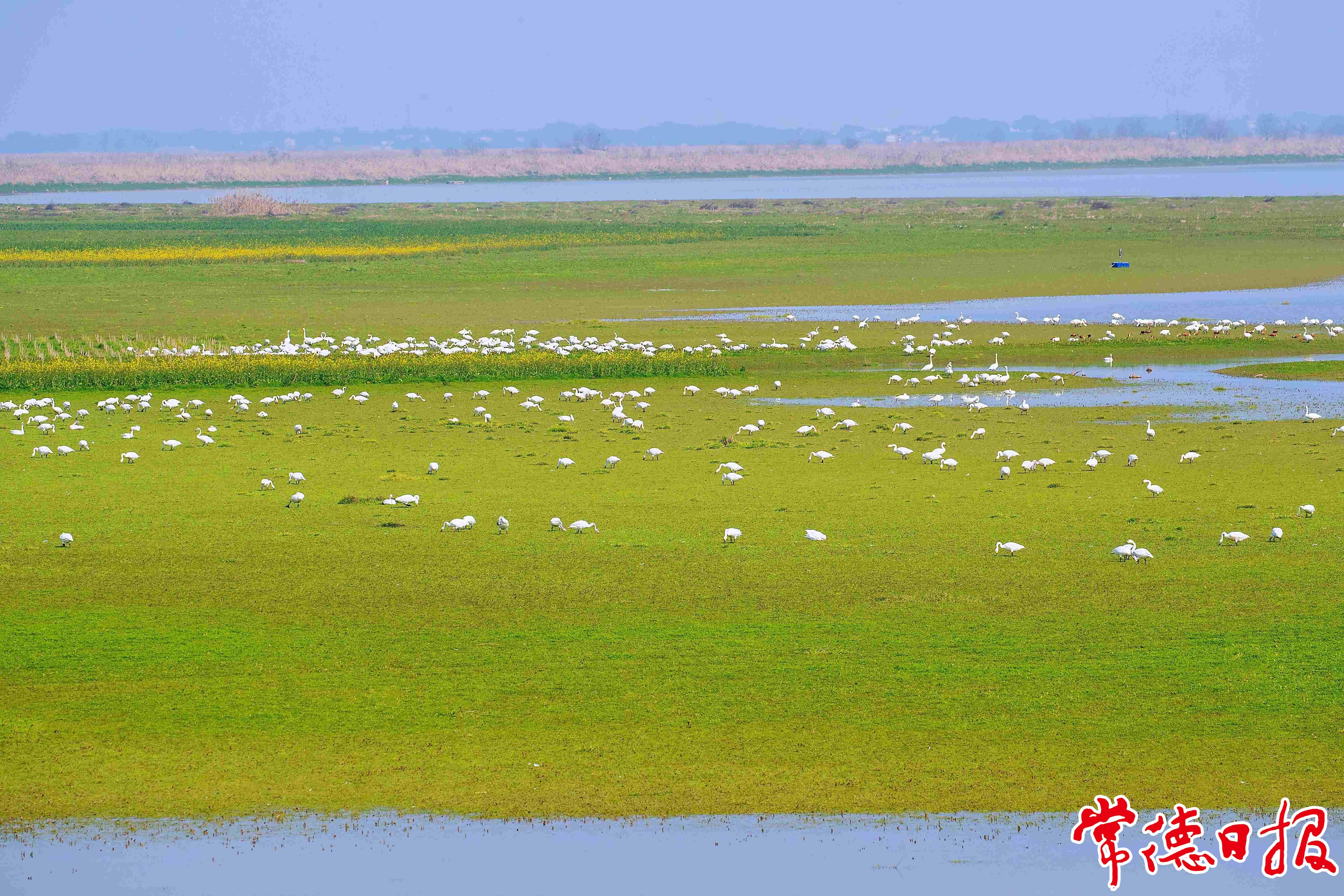 初春時節,天氣轉暖,西洞庭湖碧波蕩漾,上百只來此過冬的小天鵝,成群結隊,舞動翅膀,在水面游玩嬉戲,呈現出一幅美麗的生態畫卷。據統計,今年有33976只候鳥來西洞庭湖過冬。