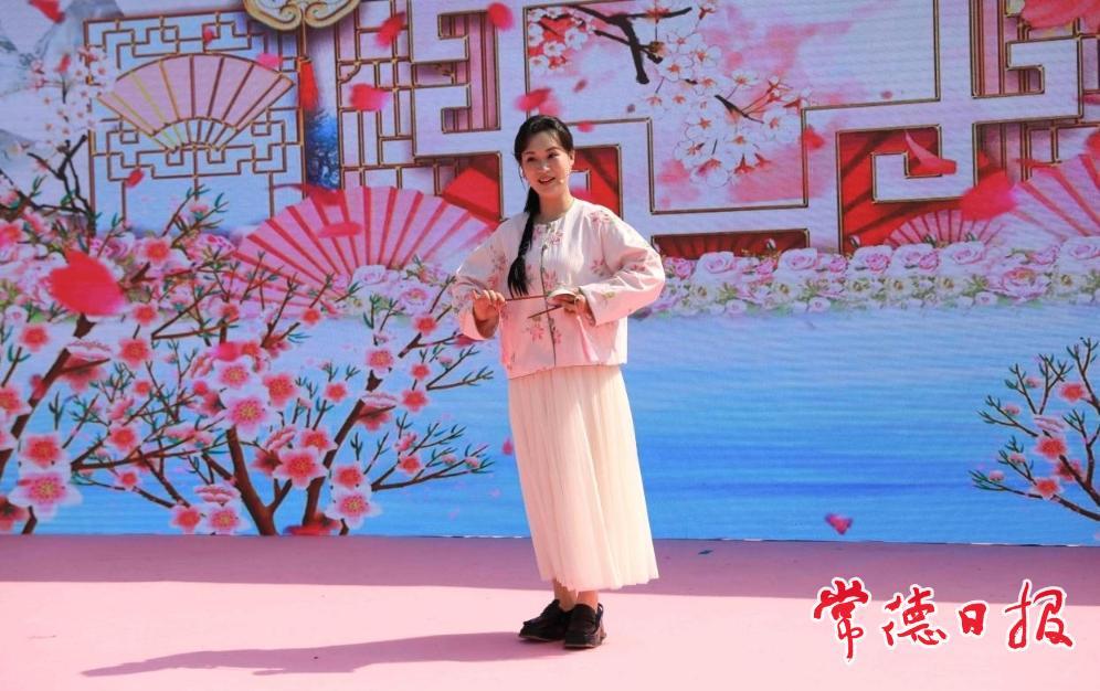 舞臺(tái)上,傳統(tǒng)與現(xiàn)代交融。常德絲弦青年傳承人李庭婷懷抱琵琶,一曲《花詞》婉轉(zhuǎn)動(dòng)聽,指尖流轉(zhuǎn)間盡顯江南絲竹的韻味;教授王燕把專業(yè)知識(shí)化作生動(dòng)故事,詳細(xì)介紹了常職百畝桃林孕育的新品種。