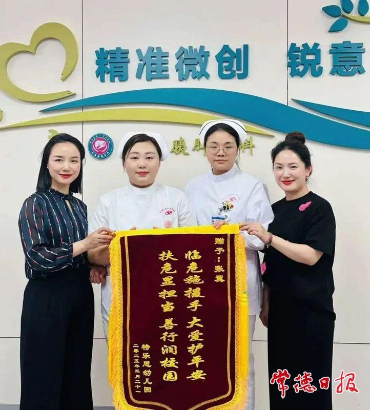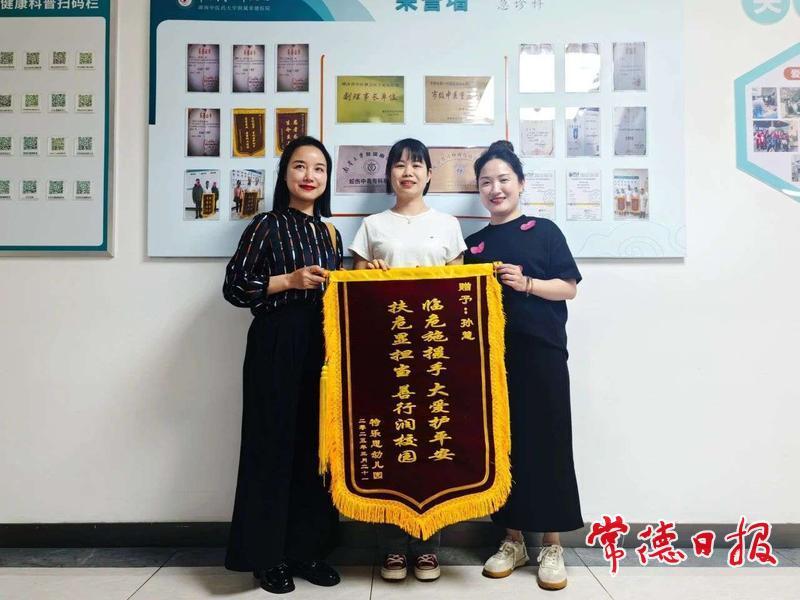 幾天后,幼兒園的老師們帶著寫(xiě)有“臨危施援手,大愛(ài)護(hù)平安;扶危顯擔(dān)當(dāng),善行潤(rùn)校園”的錦旗來(lái)到了市第一中醫(yī)醫(yī)院,對(duì)兩位白衣天使暖心相助的義舉表示了感謝。“兩位家長(zhǎng)用實(shí)際行動(dòng)給所有人上了一堂‘愛(ài)心與責(zé)任’的課,我們深感自豪!”
