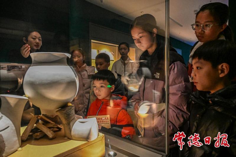 孩子們跟著講解員穿梭于場館,通過觀看展品,沉浸式感受歷史的厚重,了解常德的文化底蘊。不少孩子還拿著筆記本,將感興趣的文物展品記錄下來。“博物館就像是一本厚重的歷史書,藏著好多我們不知道的故事!”參加本次活動的孩子說道。