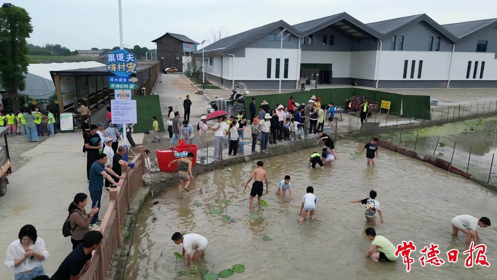 自假期首日起,港中坪片區便以“農文旅融合”為主題掀起熱潮。5月1日竹林尋寶、射箭投壺的趣味尚未消散,次日“天空夢想日”便點燃親子熱情——數十架“輕騎士”航模在稻田上空劃出優美弧線,孩童追逐的身影與螺旋槳的蜂鳴聲定格成藍天下的活力畫面;長桌嗦粉宴上,游客圍坐品味牛肉粉的濃香,和酸豆角、酸包菜的爽脆,歡聲笑語不斷;稻田親子活動中,“渾水摸魚”的泥塘里“小泥人”們高舉戰利品,荷塘抓鴨區水花四濺,童趣與野趣碰撞出最純粹的笑聲。“每個項目都讓孩子玩到不想走!”長沙游客周女士感慨道。
