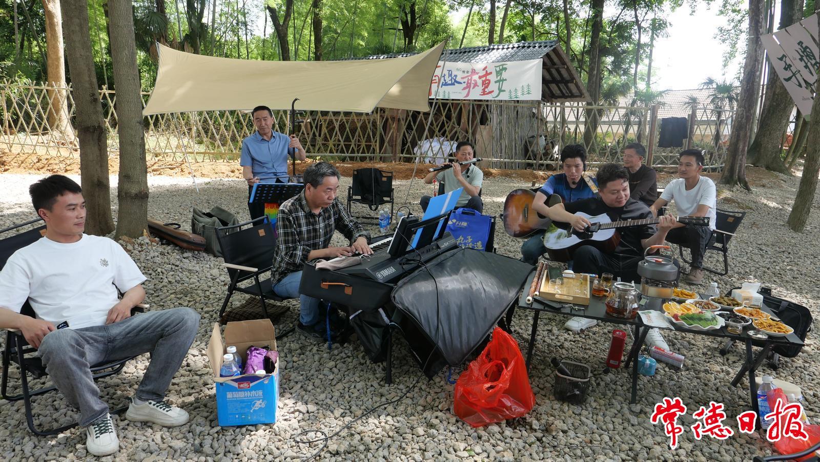 5月5日,港中坪片區傳統項目熱度不減。稻田棧道上游人悠然漫步,隨風起伏的稻浪與秋千上飛揚的裙擺相映成趣;鄉村市集內,竹編工藝品與現榨菜籽油吸引游客駐足選購。樹蔭下的休閑區,樂手淺吟低唱,游客三五一桌,圍坐品嘗咖啡、茶飲和各種美食,時光仿佛在這里慢了下來。