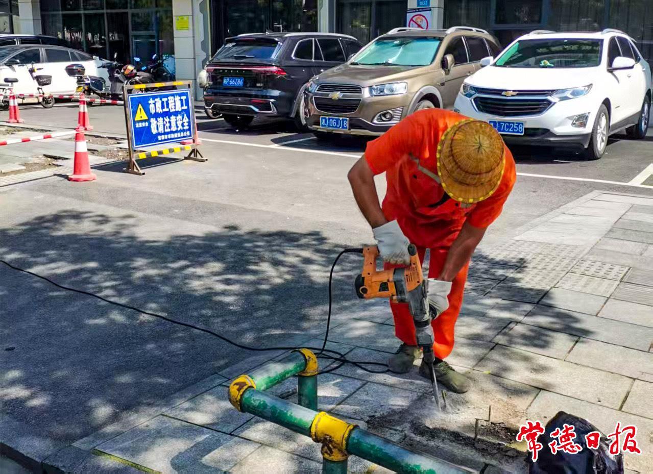 經(jīng)現(xiàn)場(chǎng)查勘,工作人員發(fā)現(xiàn)該路段因私設(shè)停車(chē)收費(fèi)欄桿長(zhǎng)期占道,導(dǎo)致行道板碎裂、存在較大安全隱患。隨即,武陵區(qū)一分公司聯(lián)動(dòng)常德市海綿城市服務(wù)中心及市城管執(zhí)法局武陵分局城西中隊(duì)展開(kāi)聯(lián)合行動(dòng)。城管部門(mén)當(dāng)場(chǎng)責(zé)令電競(jìng)館負(fù)責(zé)人限期拆除違規(guī)設(shè)施,同時(shí),武陵區(qū)一分公司啟動(dòng)應(yīng)急維修程序,組織施工隊(duì)伍對(duì)破損路面進(jìn)行緊急修復(fù)。