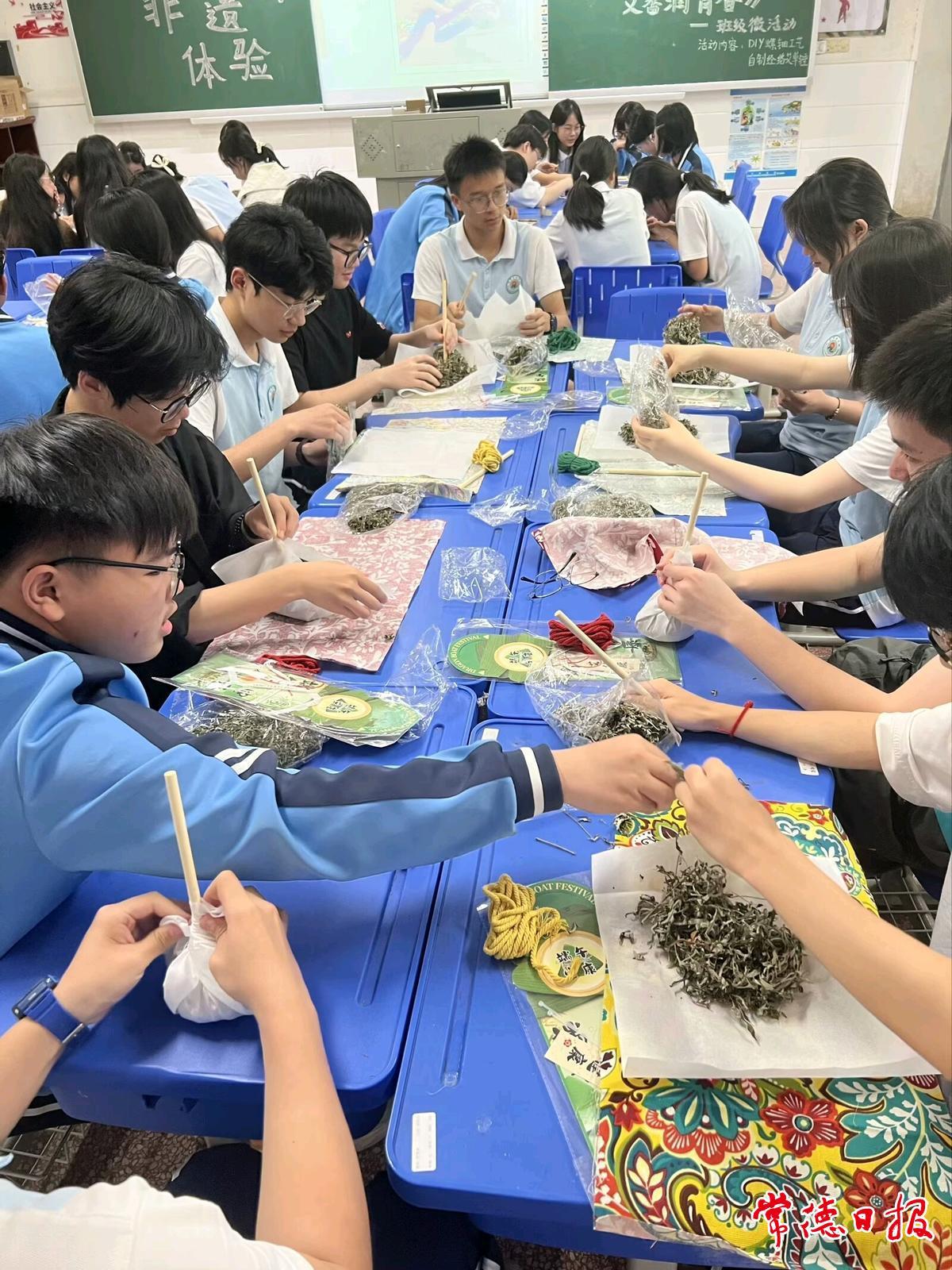 “捶打艾草時,整個人都放松了?!睂W(xué)生祝毅燃坦言。參與活動的學(xué)生也紛紛表示:“親手完成一件非遺作品,既能觸摸到傳統(tǒng)文化的溫度,也讓浮躁的心沉靜下來?!?br/>“非遺進班級不是簡單的技藝傳授,而是以文化人、以美育心的班級管理教育實踐?!眲榻B,此次活動設(shè)計緊扣“非遺傳承”與“青少年心理關(guān)懷”雙主線,聚焦3個維度——在認知維度,通過非遺技藝解析傳統(tǒng)文化中的家國情懷;在實踐維度,借手工制作培養(yǎng)耐心專注、協(xié)作共進的品質(zhì);在發(fā)展維度,依托中醫(yī)養(yǎng)生模塊增強生命關(guān)懷意識。