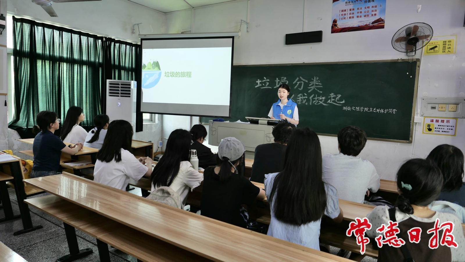 6月3日,記者在湖南文理學院見到羅文慧時,她正作為主講人為生態環保護鳥營學員們進行垃圾分類主題宣講。教室里,投影幕布上播放著垃圾分類相關知識,羅文慧指著屏幕上的分類圖表詳細講解。“可回收物、有害垃圾、廚余垃圾和其他垃圾要分別投放到對應顏色的垃圾桶。”她邊說邊展示著不同垃圾的正確投放方式,“特別是奶茶杯等塑料制品,一定要清洗干凈后投放到可回收物桶,避免殘留食物吸引鳥類啄食。”