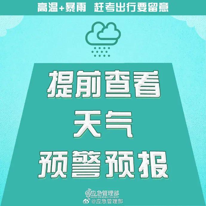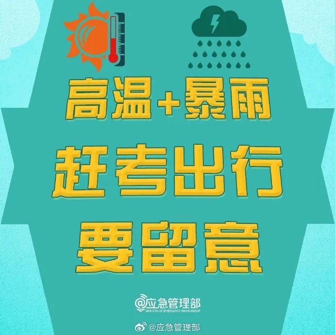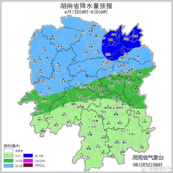 7日白天(高考),湘中以北小到中等陣雨或雷陣雨,常德、益陽北部、岳陽局地大雨,其他地區晴天到多云;最高氣溫34-36℃。