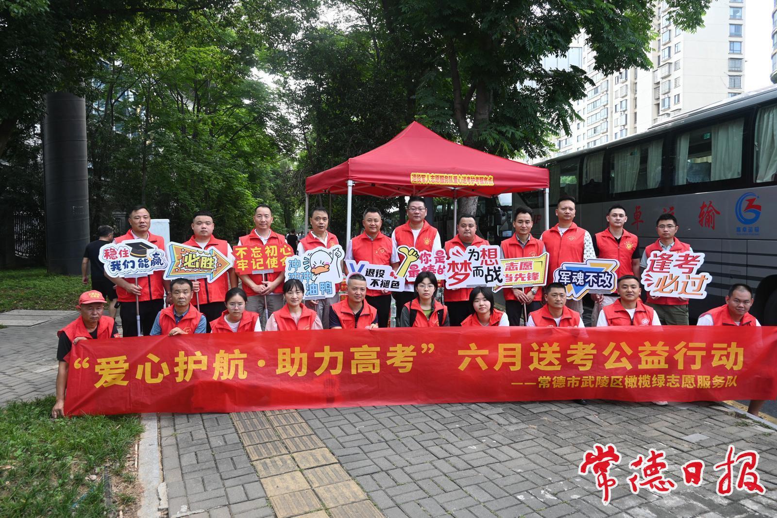 常德日報記者 肖慧 粟鈺 通訊員 袁芳 文/圖 6月7日清晨,常德市第一中學、常德芷蘭實驗學校考點外,20輛貼著“愛心送考”標識的車輛整齊列隊。身著紅色馬甲的退役軍人志愿者們穿梭在考生與家長間,胸前的志愿者徽章在晨光中微微發亮——這是常德市退役軍人志愿服務隊連續第五年為高考學子護航。