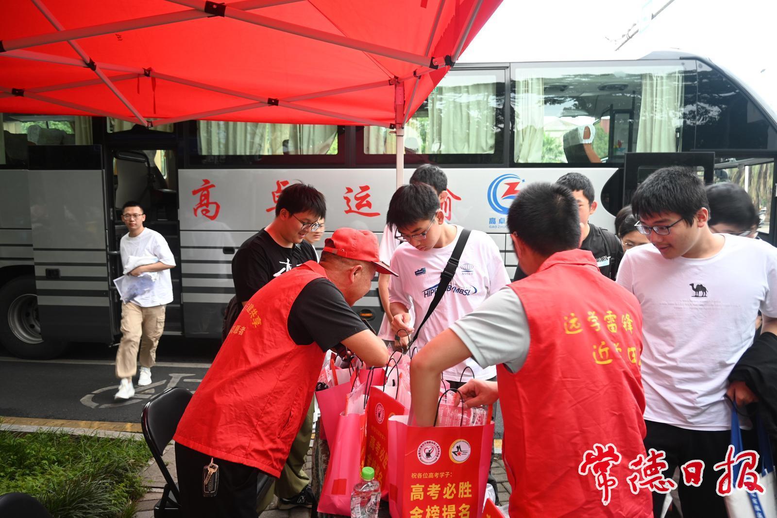 在常德芷蘭實驗學校考點,皮膚黝黑的退役軍人郭凱正給路過的考生遞上礦泉水。談及最難忘的經歷,他回憶起去年“一對一接送”的暖心故事:“有位媽媽考前一天給我打電話,反復確認接人時間和路線,我理解家長的心情。”高考當天,郭凱特意提前40分鐘到達約定地點,不僅把考生準時送到考場,還幫著檢查了文具袋。“當我把孩子按時送到后,那位媽媽還塞給我一瓶水,連聲感謝。”他憨厚地笑著。