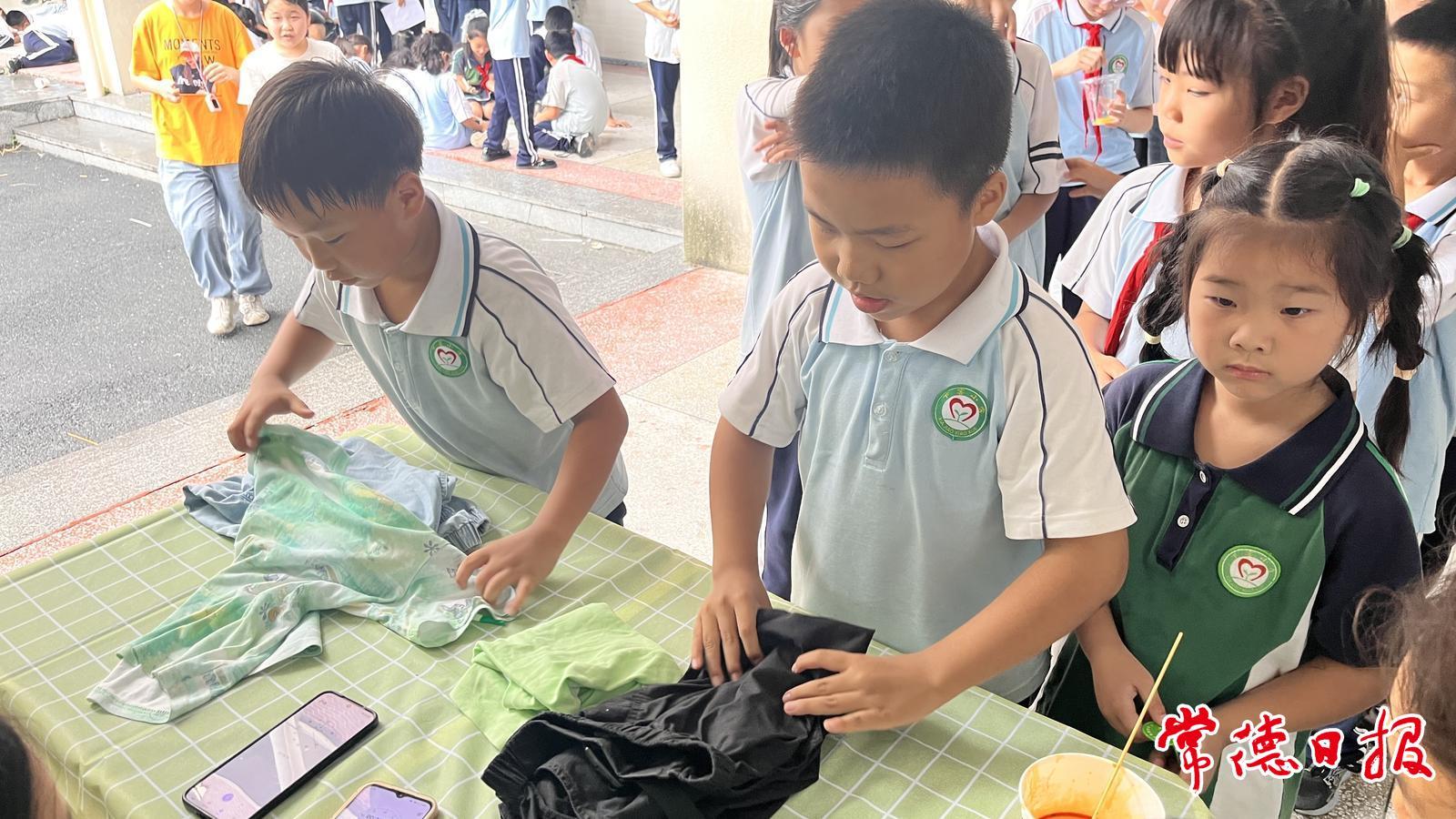 勞動教育與數學實踐的跨界融合成為亮點?!隘B衣服”項目中,兩名學生一組協作完成衣物整理,同時需精準操作計時器并讀出時間,速度與質量俱佳者可獲額外獎勵。而人氣最高的當屬“果茶”和“缽缽雞”模擬攤位,學生們運用辛苦賺來的積分幣進行“交易”(果茶3幣/杯,葷菜2幣/串,素菜1幣/串),在實踐中真切體驗貨幣換算與消費決策。