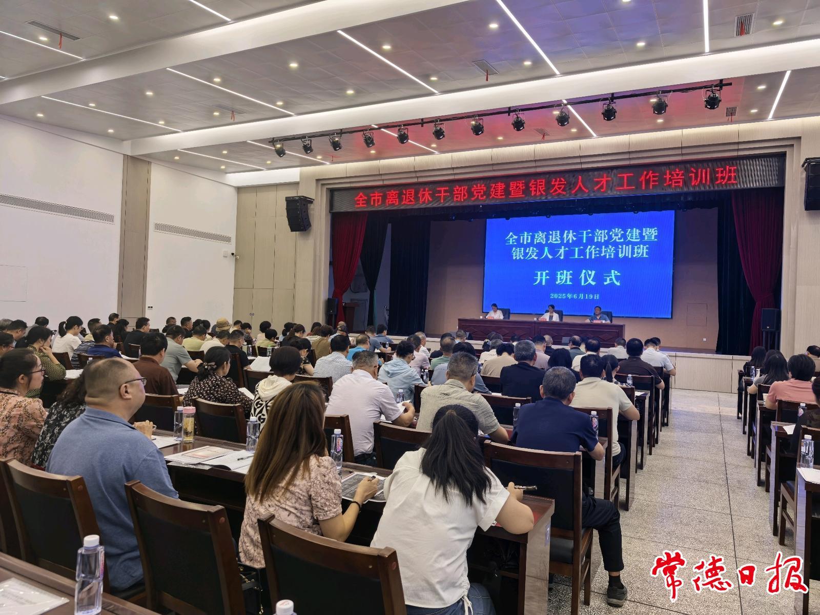常德日報記者 鄧淇月 文/圖 6月19日至20日,全市離退休干部黨建暨銀發(fā)人才工作培訓(xùn)班在常德開放大學(xué)舉辦。來自各縣市區(qū)、市直單位的130余名老干部工作者和離退休干部黨支部代表齊聚一堂,共同推動離退休干部黨組織建設(shè)全面提質(zhì)過硬,共同探索新時代銀發(fā)人才隊伍建設(shè)新路徑。