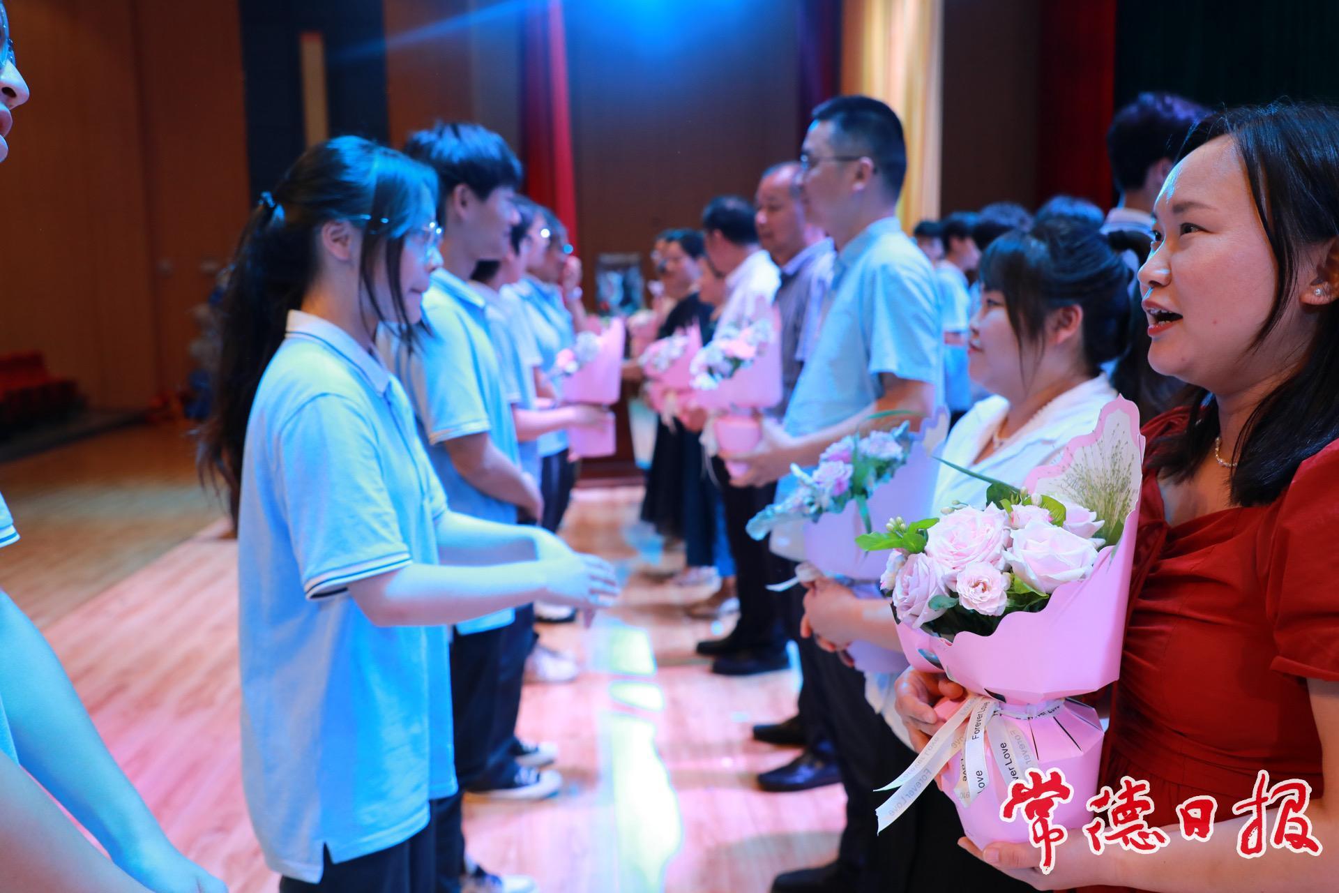 典禮上,學校領導為畢業生頒發畢業證書,學生們以鮮花謝師恩,場面溫馨感人。學校相關負責人以“人生三境界”勉勵學生堅守初心,不畏艱辛,砥礪前行,奮斗后收獲生命的驚喜。