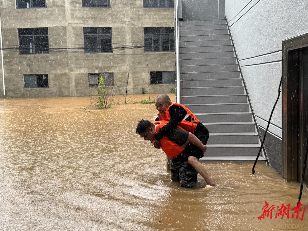 6月22日,通道侗族自治縣,救援人員在轉(zhuǎn)移被困老人。楊夢純 李舒丹 攝影報道(湖南圖片庫)