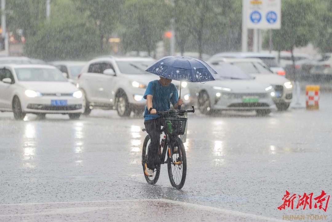 6月21日17時許,長沙市開福區(qū)湘江北路,市民在雨中出行。 湖南日報全媒體記者 李健 攝