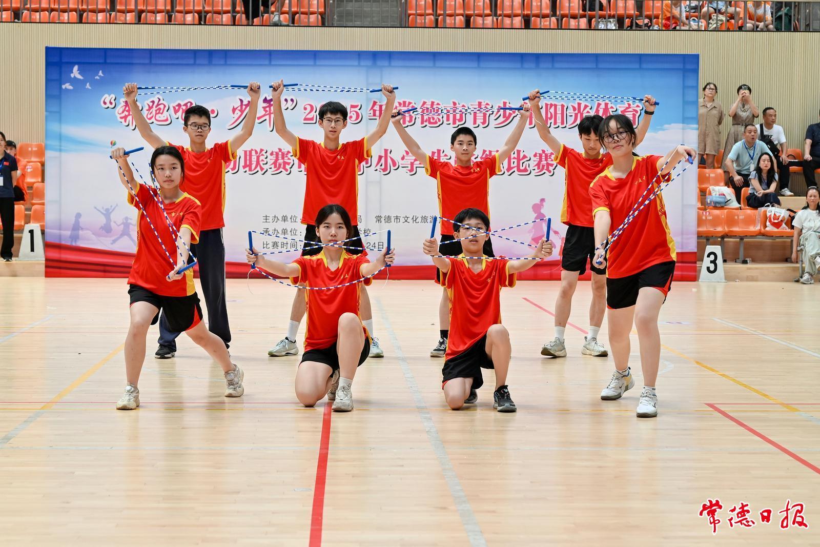 本次賽事由常德市教育局、常德市文化旅游廣電體育局聯(lián)合主辦,常德外國語學(xué)校承辦,共有市直14所中小學(xué)校的206名優(yōu)秀選手同場競技,他們以輕盈躍動的身姿展現(xiàn)新時代青少年的蓬勃朝氣,用一根根跳繩編織出活力四射的青春畫卷。