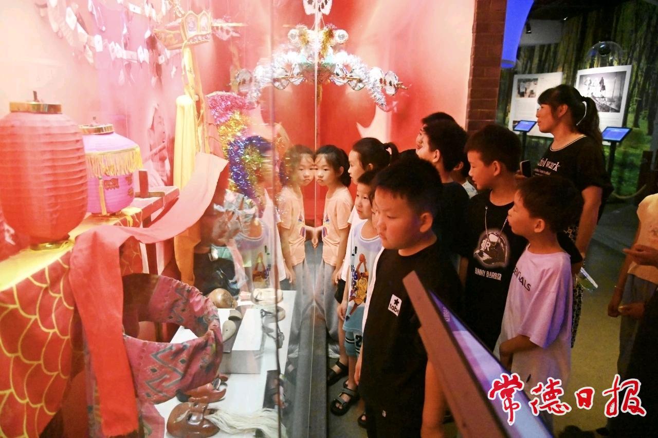 常德日報記者 江一舟 通訊員 唐奇 楊茜 文/圖 7月11日,常德市文化館迎來了一群特殊的小客人——來自鼎城區朗州小學和江南中學的近20名學生。他們在志愿者的陪伴下,開啟了一場生動有趣的沉浸式文化探索之旅。