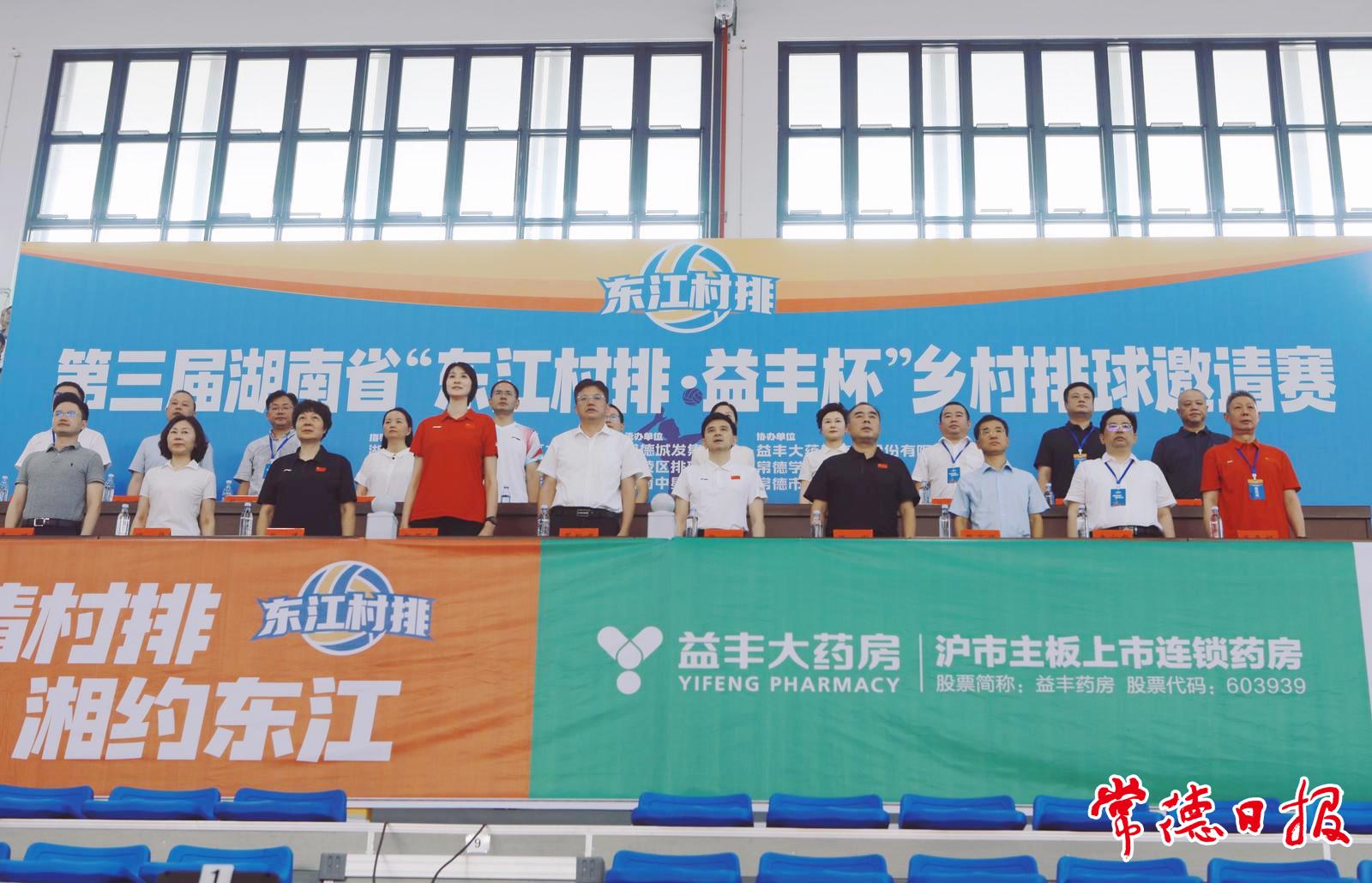 常德日報記者 王自來 文/圖 7月26日,第三屆湖南省“東江村排·益豐杯”鄉村排球邀請賽開幕式在常德學院體育館舉行。市委書記羅毅君出席開幕活動。省體育局黨組書記熊倪出席并宣布賽事開幕。前中國女排運動員、奧運冠軍趙蕊蕊為揭幕戰開球。