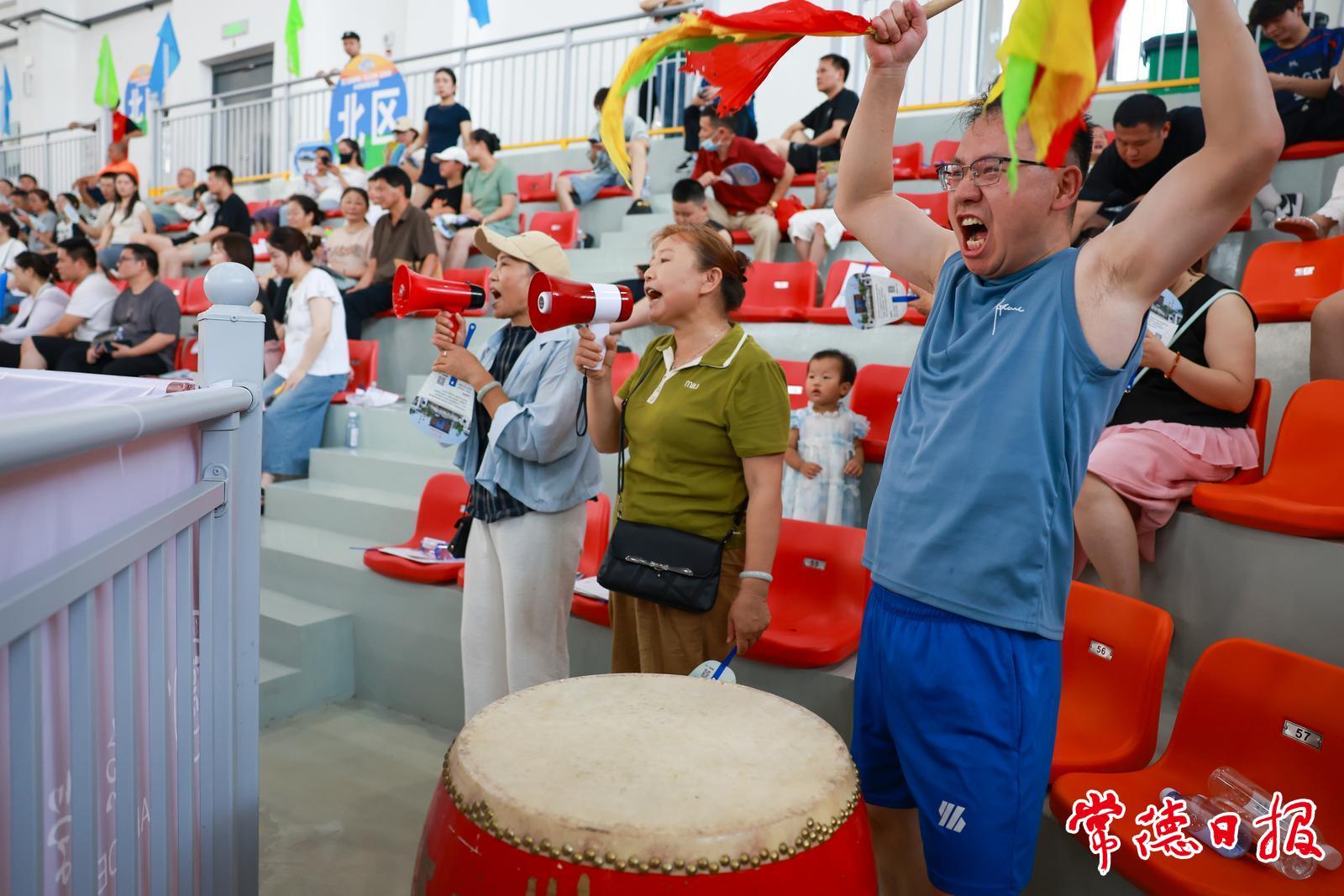 激烈賽事的間歇,排球場亦是群眾的露天舞臺:社區小姐姐拉拉隊整齊劃一的健身操;頗具才藝的社區老姐姐們自編舞蹈為自己的隊伍拉票;穿潮牌的少年們踩著鼓點街舞;身穿漢服的古箏演奏者用指尖流淌的音律為運動員助興。這種“老中青”全齡段的表演,是東江村排吸引多元群體的秘訣。就像第八次來常德的重慶旅游博主梁芊予在東江村排現場說的:在這里既能看到老一輩的體育熱情,又能找到年輕人喜歡的潮流元素。