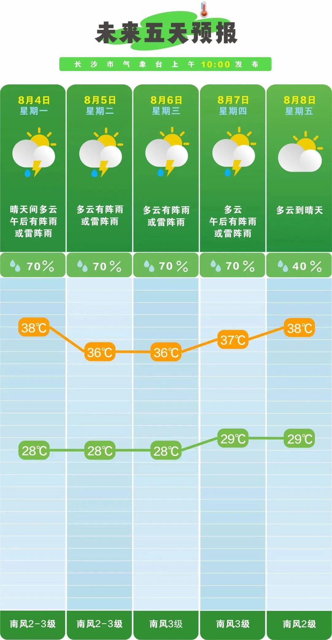 此外,省氣象臺預計,未來三天湘中以南多小到中等陣雨或雷陣雨,局地暴雨。其中,4日白天,全省大部分地區多云有陣雨或雷陣雨,永州南部、郴州中南部和株洲南部部分地區中雨,局地大到暴雨;