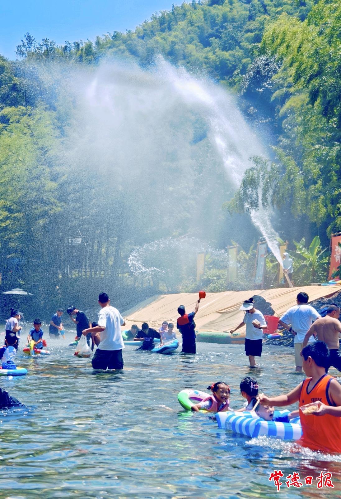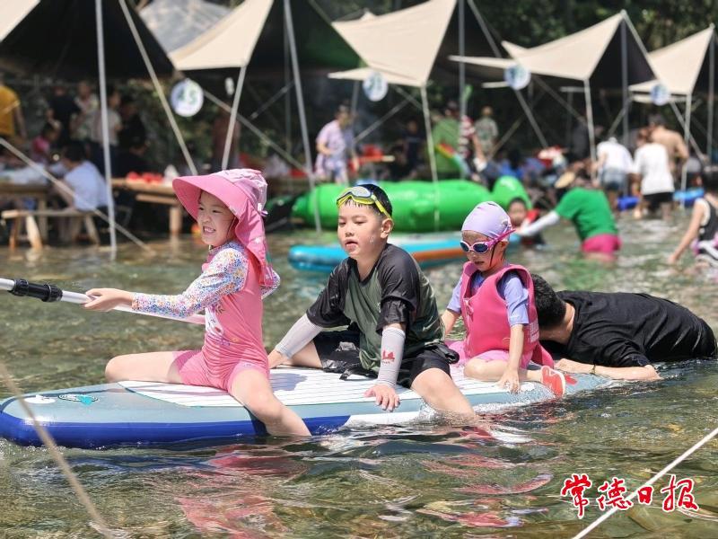 連日來的高溫天氣,讓市民紛紛尋找避暑好去處,桃源縣沙坪鎮歡竹溪水部落迎來了大批游客,成為消暑度夏的“新寵”。8月1日,記者在現場看到,前來游玩的市民游客絡繹不絕。水上樂園里,市民游客盡情嬉戲,或在溪水中暢游,或是體驗水上槳板、抓鴨子比賽、摸魚比賽等水上娛樂項目。常德日報記者 劉頌 攝