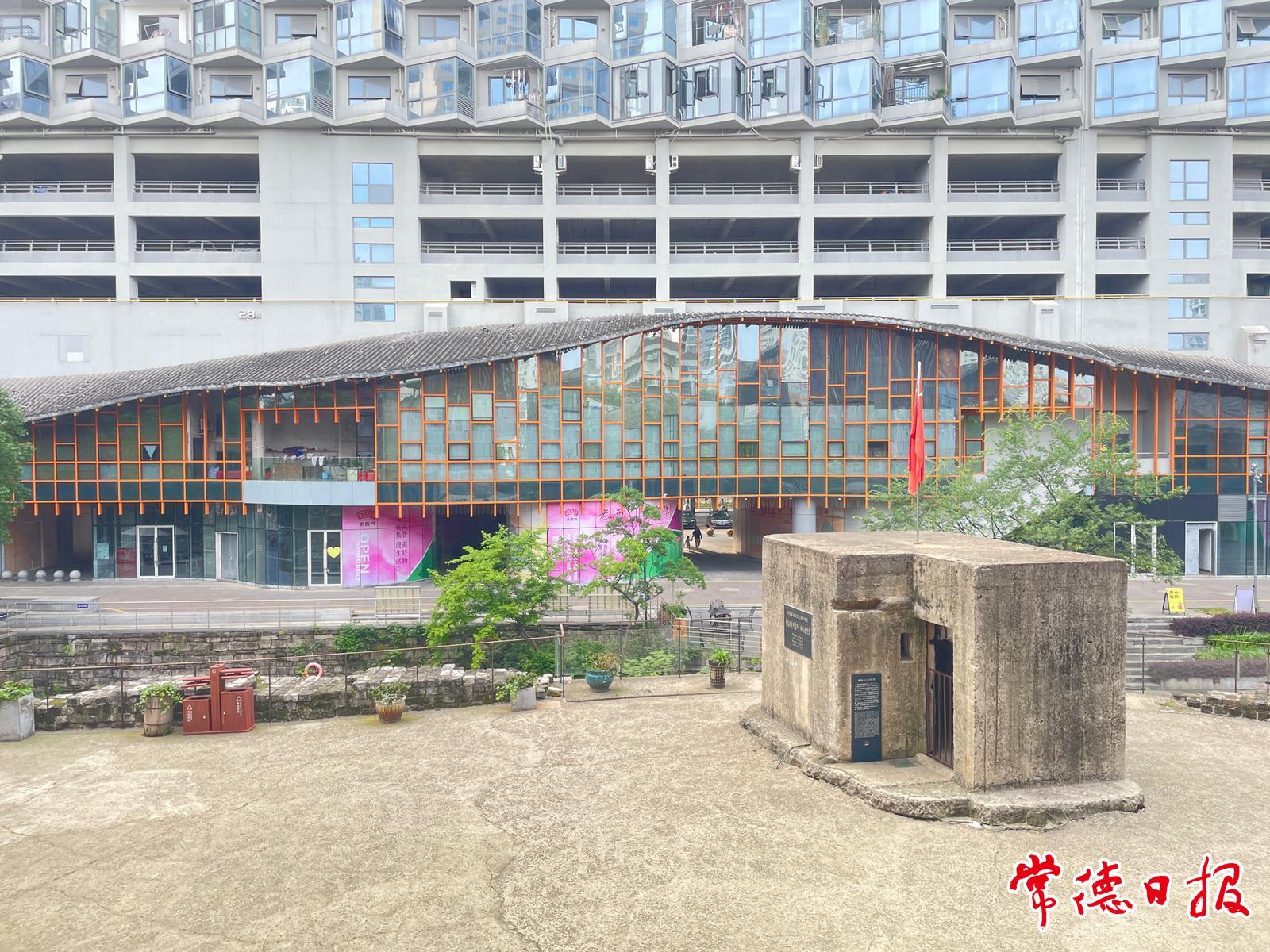 從建設路拐入城壕灣古玩文化街,走過一段不太平整的青石板路,在一叢叢怒放的三角梅旁,我們看到了莊嚴肅穆的城壕灣碉堡。城壕即護城河,歷史上的東門城壕灣是古城常德主要的商貿集散地,各種美食吸引著居民和商賈聞香而來。然而,1943年冬天的炮火,將這一帶的房屋盡數摧毀,曾經富庶熱鬧的家園變成了斷壁殘垣。城壕灣碉堡是169團官兵保衛常德城的重要堡壘,169團團長柴意新率部守衛常德東門城墻,指揮官兵殊死搏殺。東城門失守之后,殘酷的巷戰旋即開始,戰士們的身體成為了盾牌。