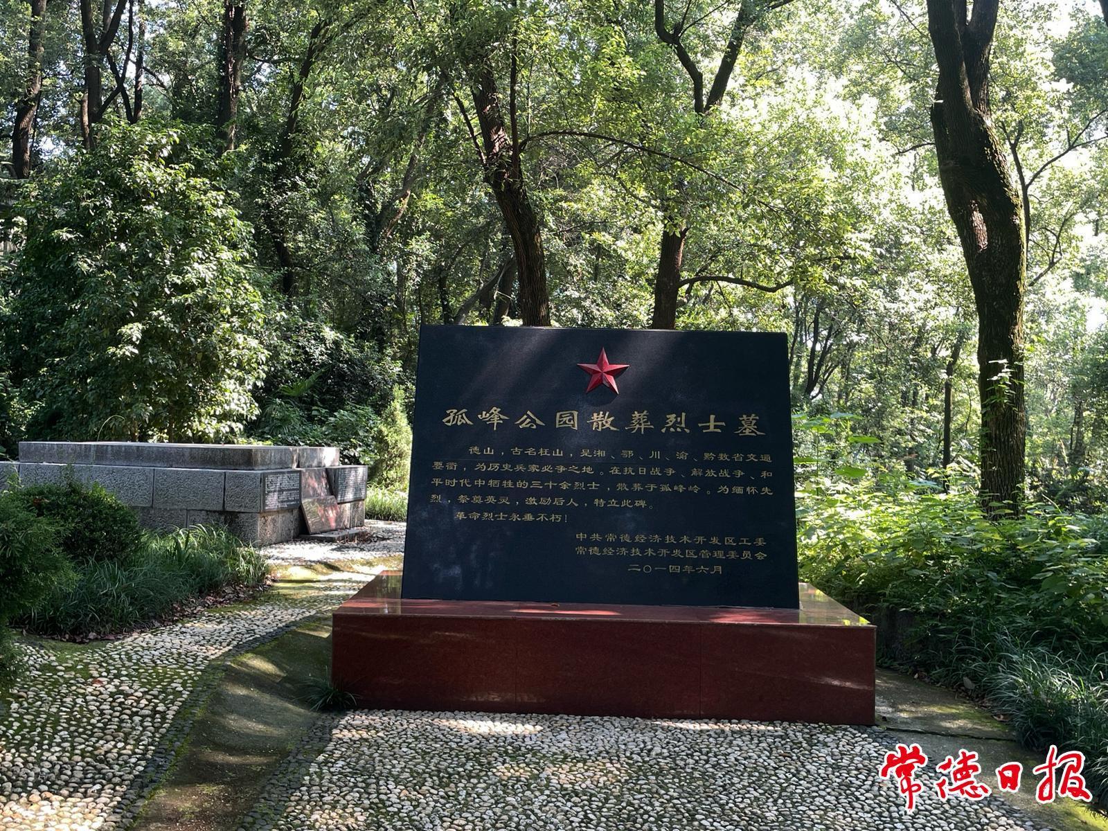 在德山之上的孤峰公園,傘是多余的。順著林間小道向前緩步而行,只見道路兩旁大樹高舉,茂密的枝葉間露出一小片一小片湛藍的天空。道旁的墓碑不時閃入眼前:張惠民上校殉國處,孤峰公園散葬烈士墓,無名烈士之墓。30多座分布在山間的烈士墓和幾座尚存的碉堡,提醒我們這里80多年前曾是一座戰場。今日,戰場已成公園,成為周邊居民的登高之地、散心之所。