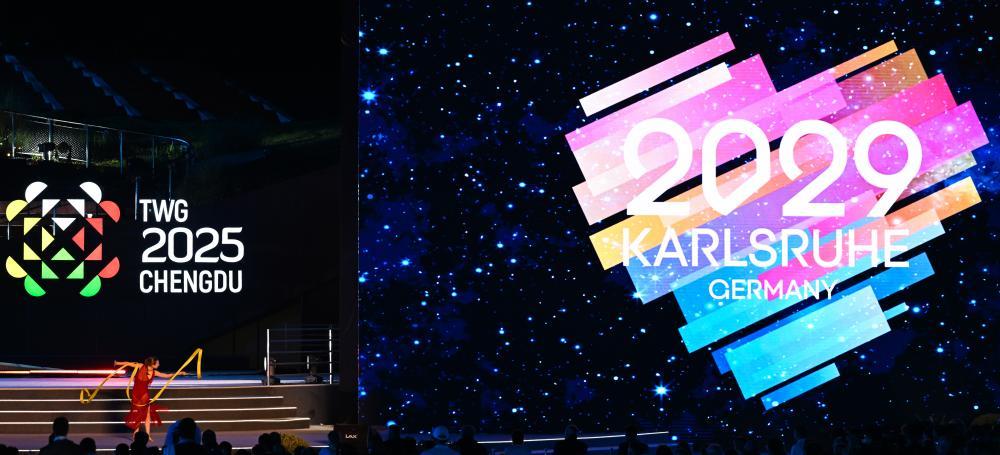 成都世運會組委會主席施小琳、國際世界運動會協會主席何塞·佩魯雷納先后致辭,向為本屆世運會圓滿成功作出貢獻的所有人員表示感謝。下屆世運會舉辦城市德國卡爾斯魯厄市市長弗蘭克·門特魯普致辭,熱情邀請全球賓客四年后相聚卡爾斯魯厄。
