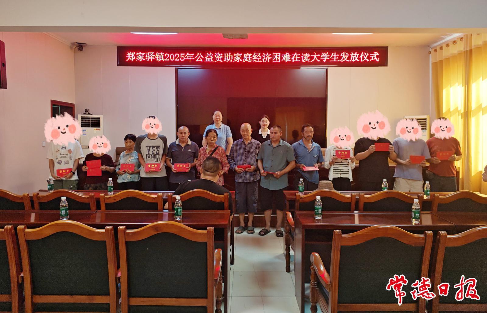 常德日報記者 吳紫欣 通訊員 黃飛躍 文/圖 8月20日,桃源縣鄭家驛鎮舉行2025年公益資助家庭經濟困難在讀大學生發放儀式,現場為14名符合條件的學子發放資助金,助力學子們順利完成學業,點亮求學夢想。