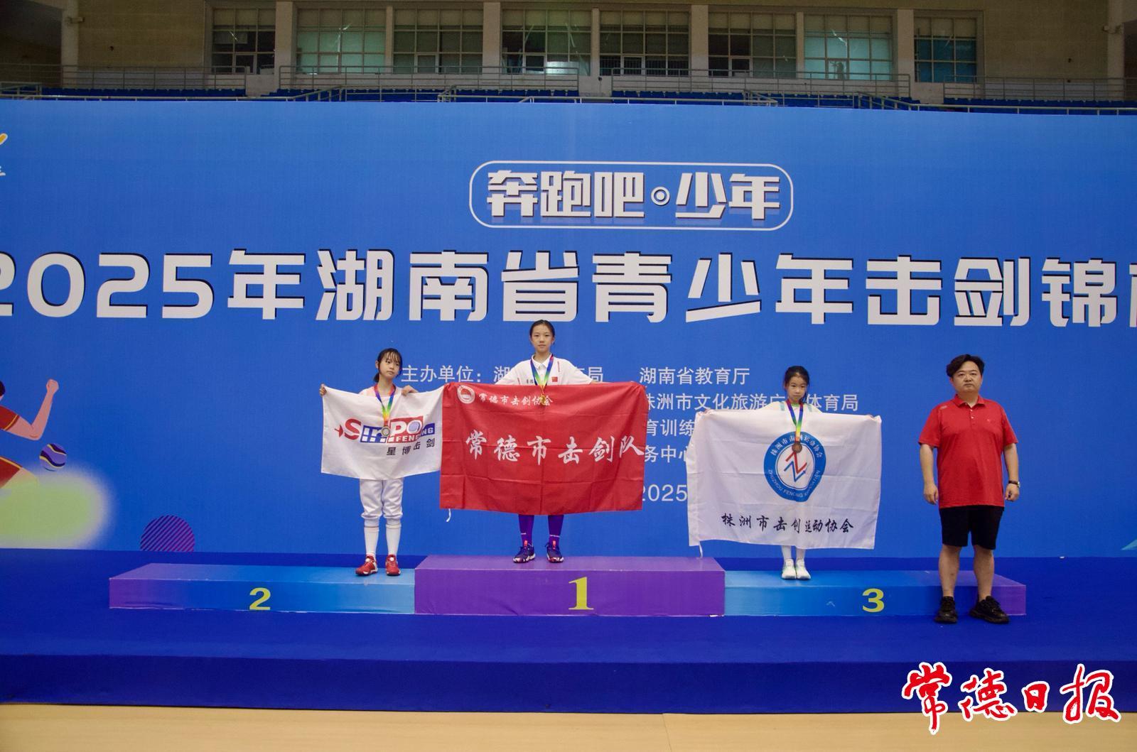 歷經三天激烈角逐,在團體賽中,曹馨尹、趙千惠、佘夢溪榮獲U14女子花劍團體冠軍,覃煒云、傅翌辰、徐端喬、張辰佑榮獲U14男子重劍團體亞軍。在個人賽中,羅梓瑞榮獲U18女子重劍個人冠軍,曹馨尹榮獲U14女子花劍個人冠軍,薛子悅榮獲U12女子花劍個人冠軍,趙千惠榮獲U14女子花劍個人亞軍,徐端喬榮獲U14男子重劍個人亞軍,劉桐瑗榮獲U18女子重劍個人季軍,覃煒云榮獲U14男子重劍個人季軍,佘夢溪榮獲U14女子花劍個人季軍。其中,羅梓瑞獲得國家一級運動員證書、劉桐瑗(2025年7月通過常德外國語學校體育特長生招錄學生)獲得國家二級運動員證書。