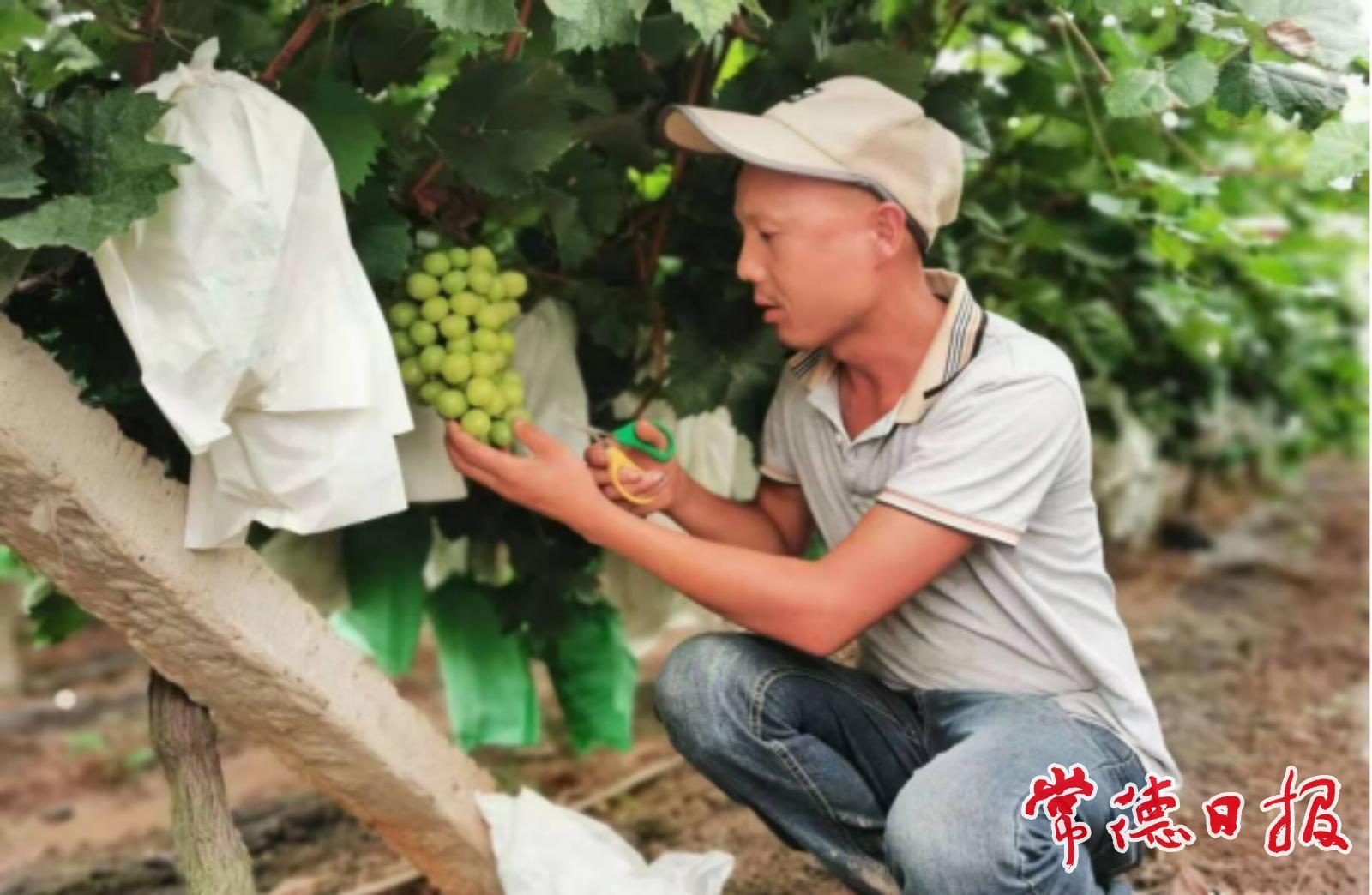 “這幾天天氣好,我家的‘陽光玫瑰’今年長勢很好,現(xiàn)在每天都有好多人前來采摘呢!”近日,澧縣官垸鎮(zhèn)仙桃村脫貧戶樊明喜每天天沒亮就早早地來到葡萄園里,等待前來采摘的客人,看到葡萄藤上沉甸甸的果實,他的嘴角忍不住翹起來。