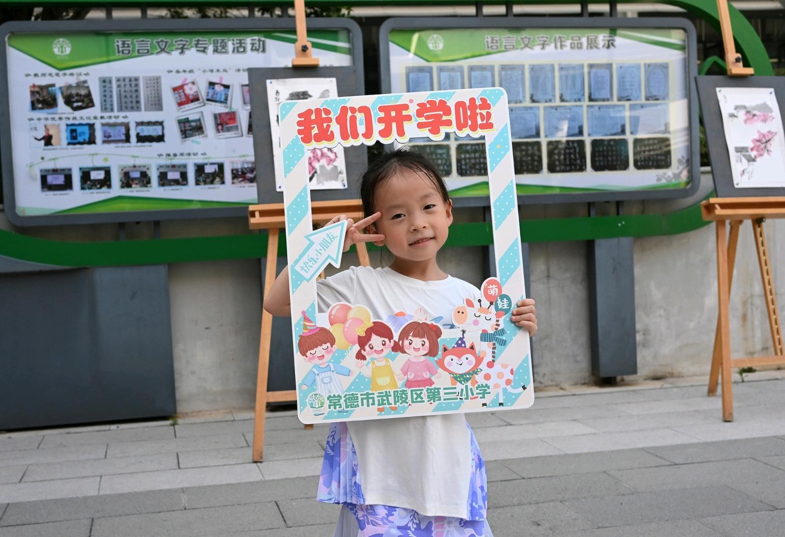 除了主題宣講,學校還在校園內布置了許多學生的繪畫作品,并設置了開學打卡相框,不少學生和家長紛紛駐足合影,為新學期留下難忘紀念。