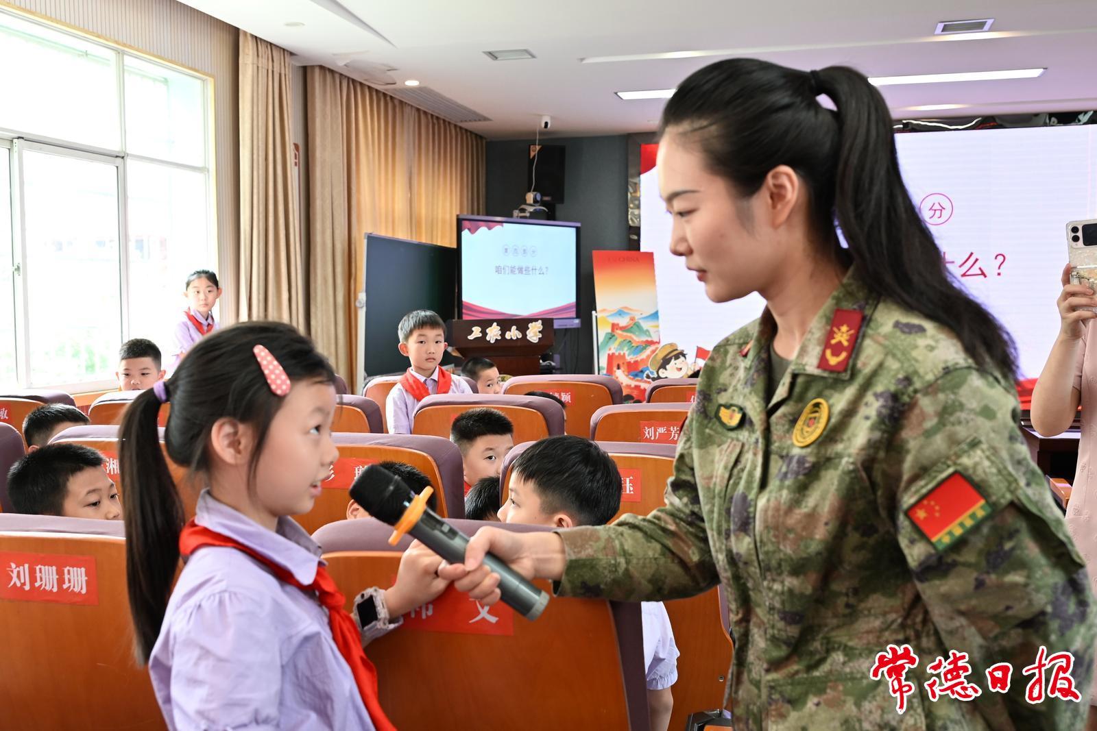 常德日報記者 姚璇 通訊員 葛詩倩 文/圖 9月1日上午,武陵區工農小學聯合武陵女子民兵志愿宣講團隊,開展以“從閱兵場到課堂:感受大國力量”為主題的國防教育思政大課堂活動。今年是紀念中國人民抗日戰爭暨世界反法西斯戰爭勝利80周年,學校將“九三閱兵”敘事融入課堂教學,通過現場宣講、遠程連線、互動問答等形式,為學生打造一堂沉浸式、互動型的愛國主義教育課。