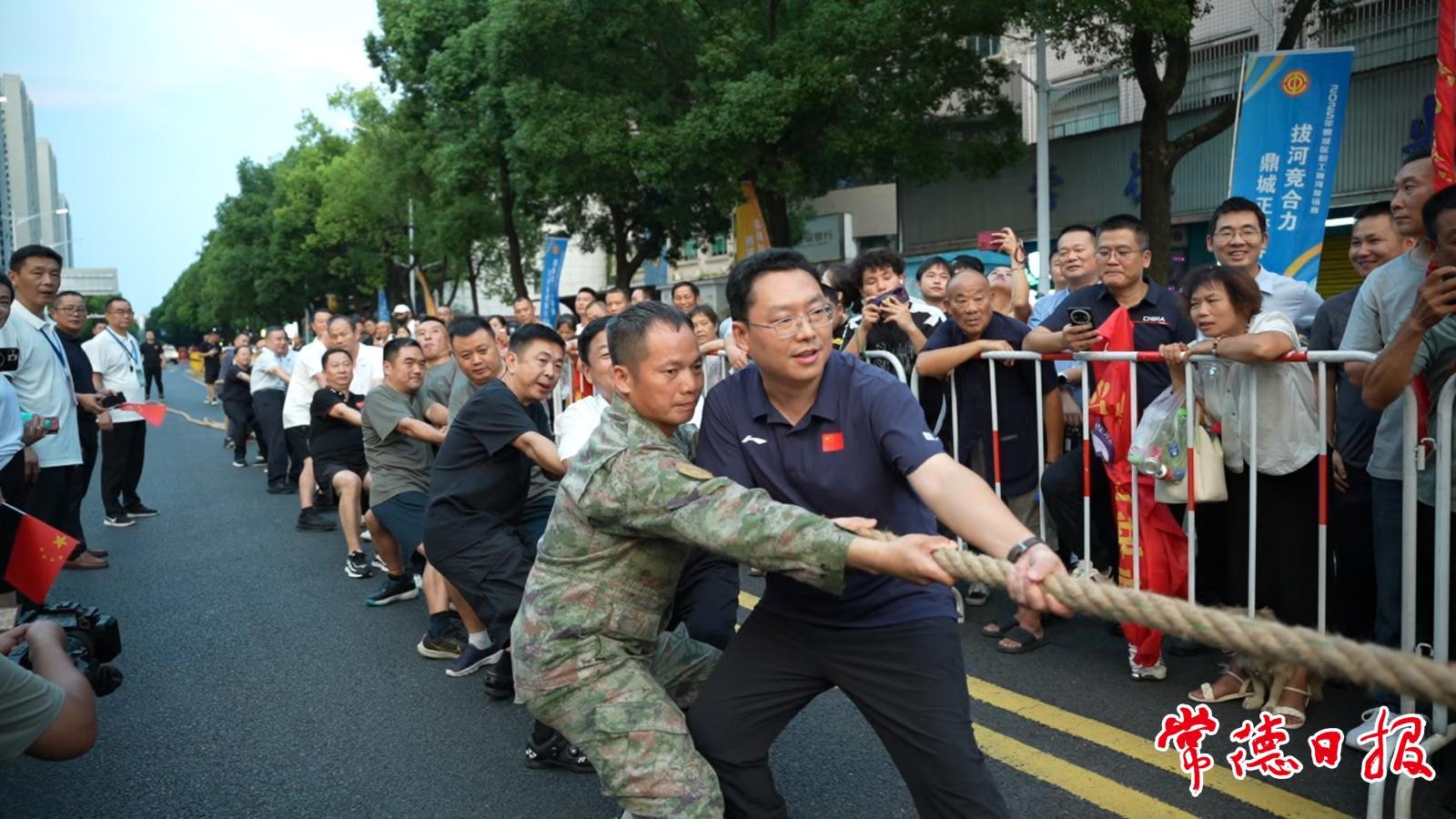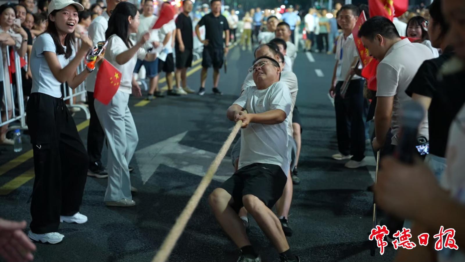 常德日報記者 劉清 伍銀 馮順前 文/圖 “加油!加油!”9月1日晚,常德鼎城區臨沅路吾悅廣場段人聲鼎沸、熱鬧非凡,2025年鼎城區職工拔河友誼賽在此拉開帷幕。