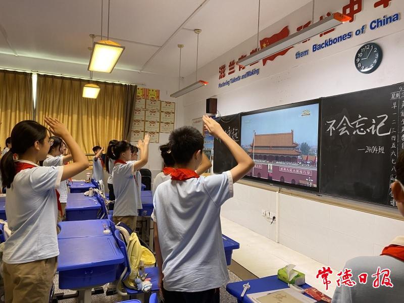 常德日報記者 楊鑫 通訊員 陳奧鈴 文/圖 9月3日上午,常德嘉樹學校組織全體師生集中觀看紀念中國人民抗日戰爭暨世界反法西斯戰爭勝利80周年大會直播盛況。