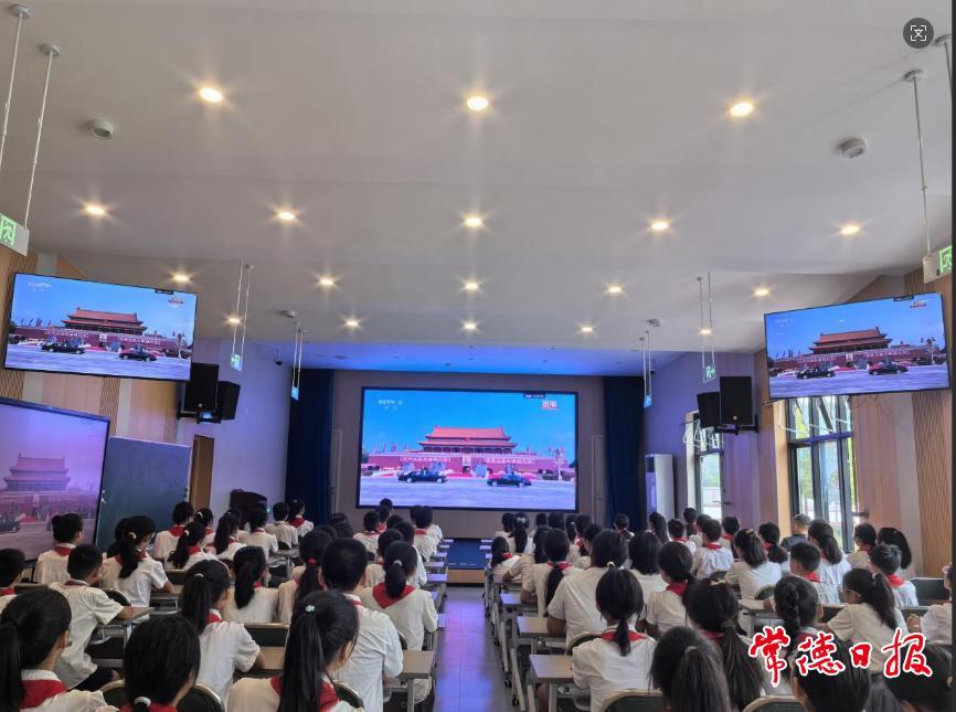 常德日報記者 楊榮國 通訊員 譚霞玲 文/圖 9月3日上午,紀念中國人民抗日戰爭暨世界反法西斯戰爭勝利80周年大會在北京天安門廣場隆重舉行。西洞庭管理區中心完全小學組織全體黨員教師及六年級師生集體觀看大會直播,將愛國主義教育作為“開學第一課”的重要內容。